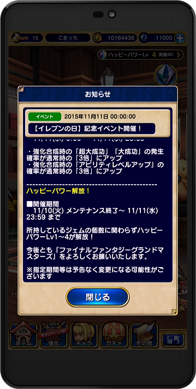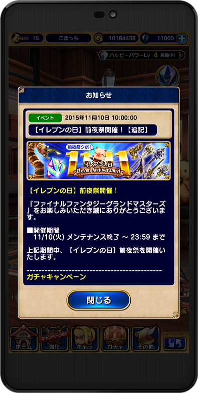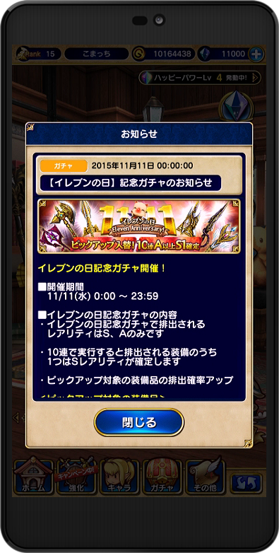 イレブンの日記念ログインボーナス 11回分のジェムプレゼント!