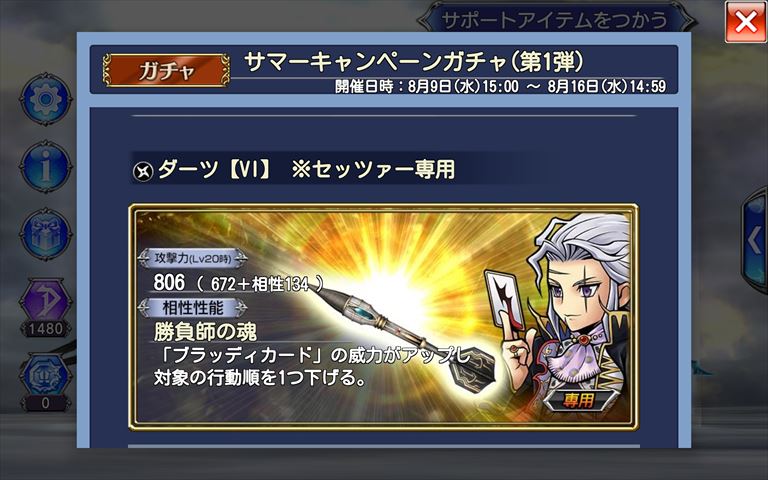 キャンペーンガチャでは、セッツァーさんの専用武器も新登場✨
